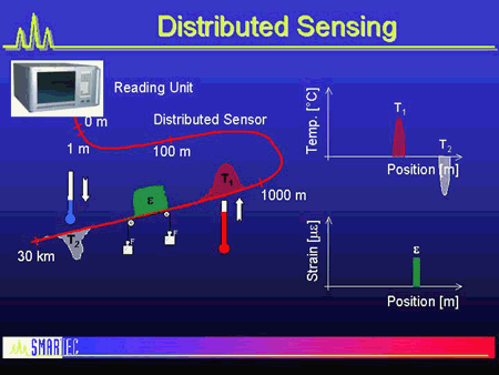 多路復用和分布式傳感器的獨特之處在于它們沿著單根光纜在大量點提供測量:非常適合最小化電纜布線和電纜重量,或用于監(jiān)控管道,水壩等擴展結構。