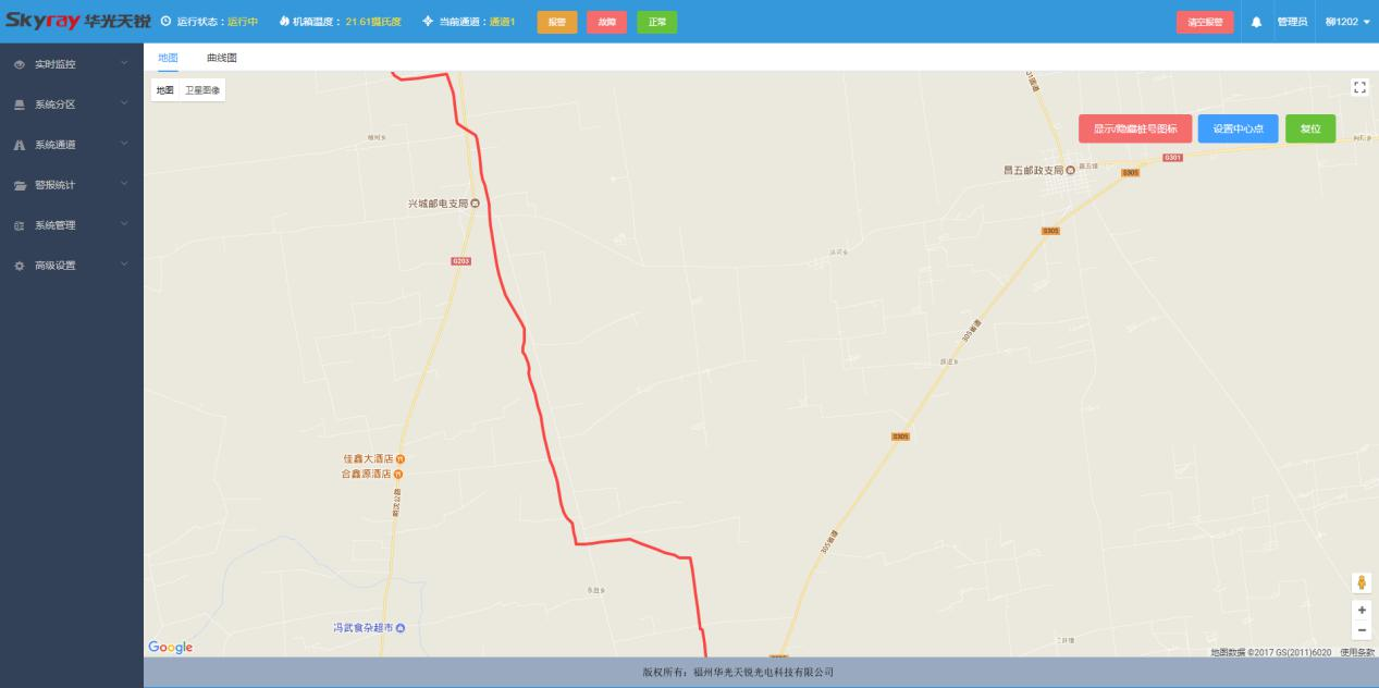 天然氣管線泄漏安全監(jiān)測(cè)系統(tǒng)采用目前先進(jìn)的管道溫度系統(tǒng)監(jiān)測(cè)技術(shù)。僅用天然氣管線中的通訊光纜的一根光纖就可實(shí)現(xiàn)長(zhǎng)達(dá)幾十公里的天然氣管道泄漏定位報(bào)警。通過(guò)基于通訊光纜的分布式光纖測(cè)溫技術(shù),對(duì)天然氣管線進(jìn)行在線溫度分布監(jiān)測(cè),就能夠通過(guò)管道溫度異常點(diǎn)的探測(cè),準(zhǔn)確發(fā)現(xiàn)管道的泄漏點(diǎn),并及時(shí)的進(jìn)行報(bào)警和定位。如果天然氣管線發(fā)生泄漏,高壓氣體的體積膨脹將引起漏點(diǎn)附近溫度的下降,分布式光纖測(cè)溫系統(tǒng)同樣可通過(guò)溫度異常點(diǎn)的探測(cè),發(fā)現(xiàn)并定位天然氣管線的泄漏點(diǎn)。通過(guò)對(duì)天然氣管線進(jìn)行在線的分布式溫度監(jiān)測(cè),并將系統(tǒng)設(shè)備接入管道監(jiān)測(cè)系統(tǒng)局域網(wǎng),通過(guò)網(wǎng)絡(luò)信號(hào)可將溫度信息上傳給中央服務(wù)器??稍谡麄€(gè)天然氣管線線路發(fā)生管道泄漏以及事故初期階段,第一時(shí)間發(fā)現(xiàn)并報(bào)告預(yù)警點(diǎn)的具體位置、溫度變化、溫度下降走向等信息數(shù)據(jù),為天然氣管線管理部門及其它相關(guān)部門及時(shí)定位、分析可能發(fā)生的管道泄漏事故提供可靠堅(jiān)實(shí)的信息獲取手段,為天然氣管線系統(tǒng)安全運(yùn)行提供高效的安全保障。本系統(tǒng)具有本質(zhì)防爆、抗強(qiáng)電磁干擾、電絕緣性好、防雷擊、高精度、重量輕、體積小等優(yōu)點(diǎn),適合在易燃、易爆等高危環(huán)境應(yīng)用。設(shè)備聯(lián)網(wǎng)后,通過(guò)載入百度地圖顯示光纜所在位置地圖,并設(shè)定中心點(diǎn),選定當(dāng)?shù)厮谖恢?,可根?jù)管道的走向在地圖上標(biāo)出光纜走向圖,當(dāng)發(fā)生報(bào)警時(shí),界面會(huì)出現(xiàn)一個(gè)彈窗,顯示報(bào)警地點(diǎn),報(bào)警時(shí)間等。