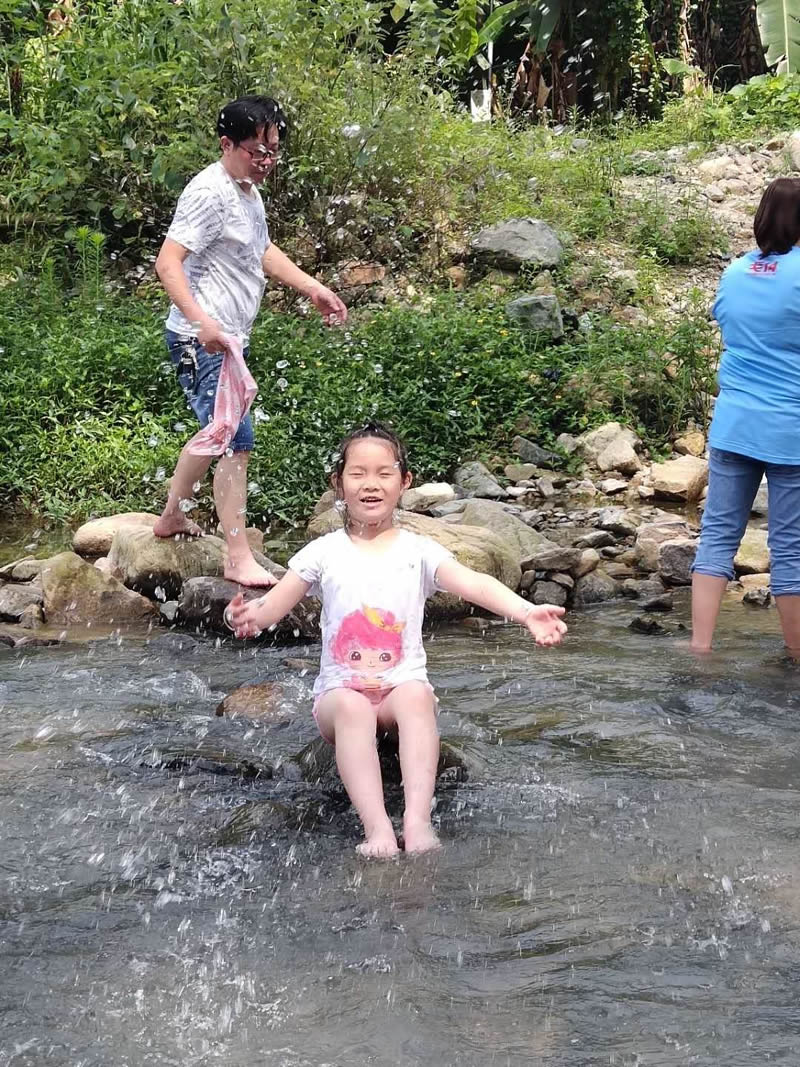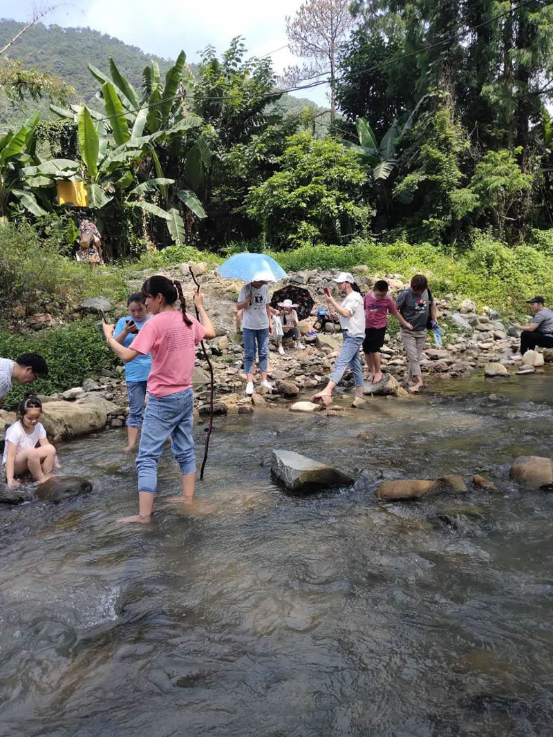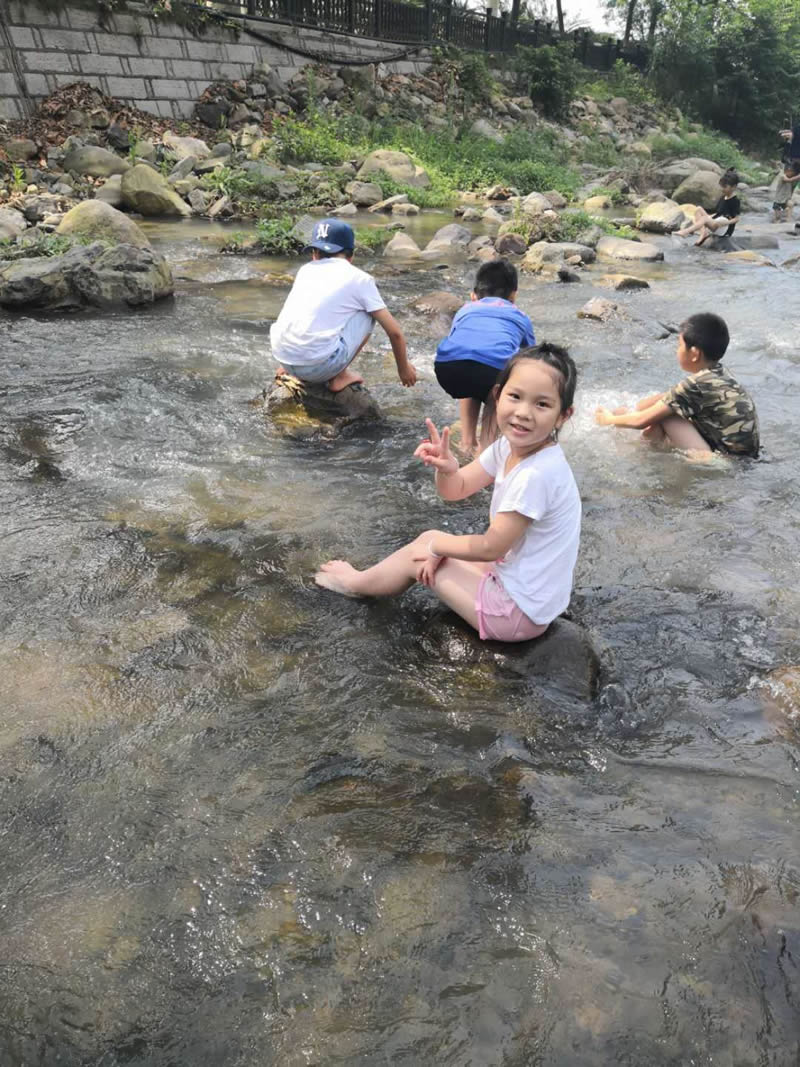 小孩們在大人們的帶領(lǐng)下,在潺潺的溪水中歡樂的玩耍,夏季炎熱的天氣,唯有戶外的清涼能夠帶來一絲絲的暢快。